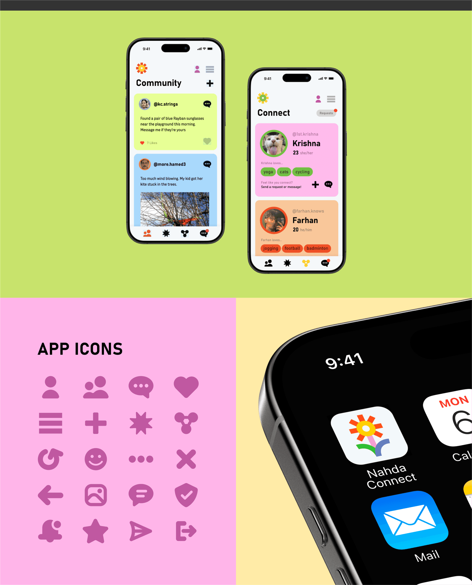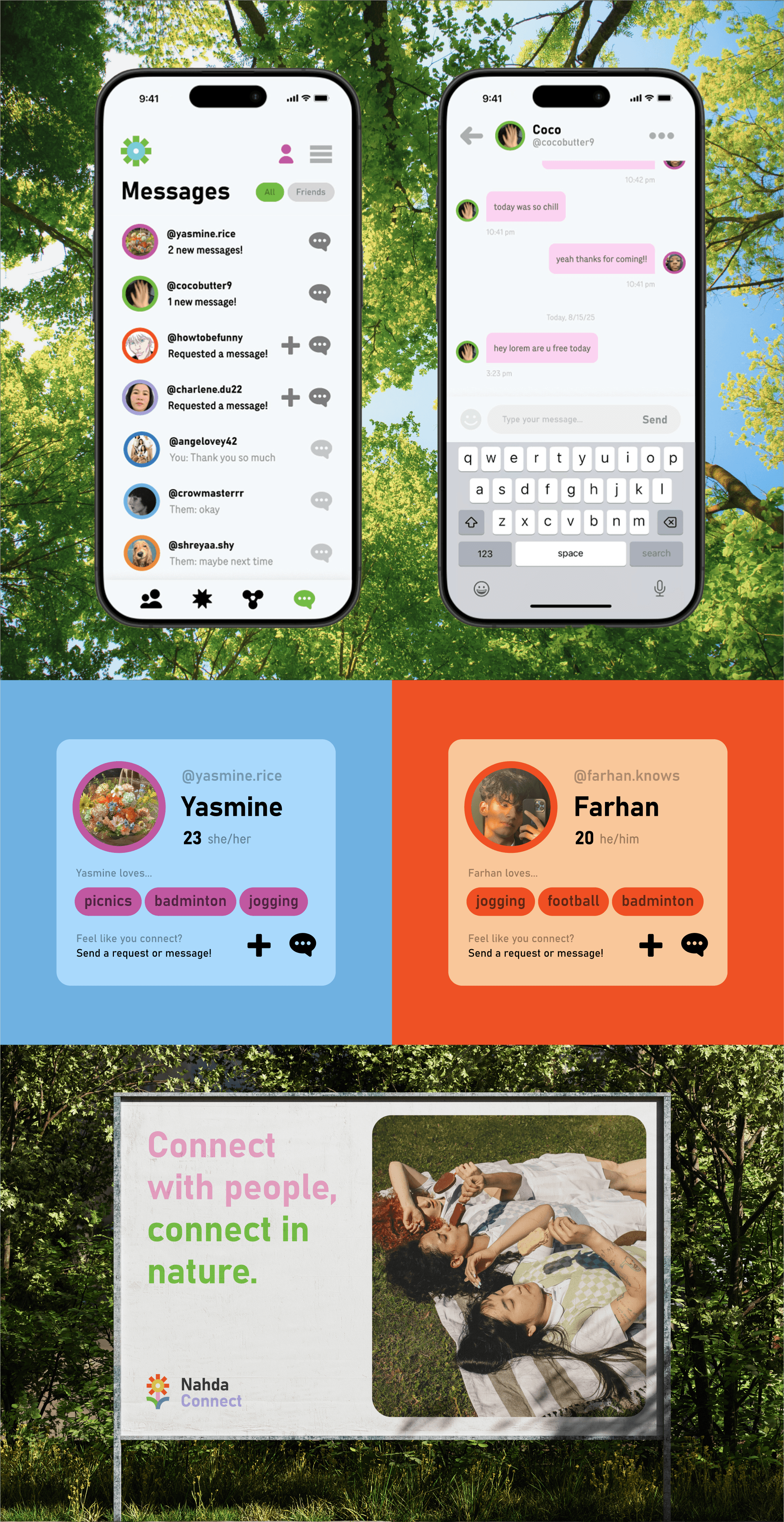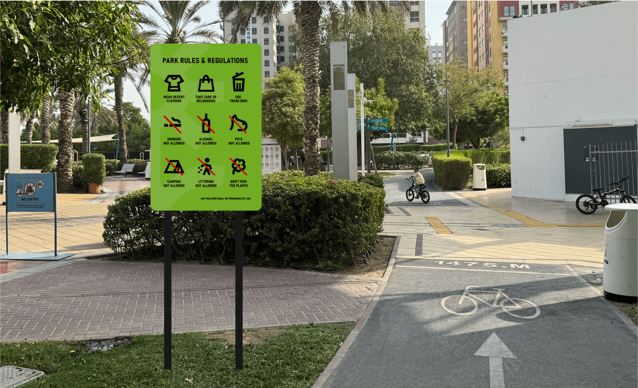 This project aims to improve Al Nahda Pond Park by providing the community of the park with a platform to find and maintain social connections around the park. This resulted in Nahda Connect, a social app where users can find people with similar interests that they can bond with at the park (Try it here!) Redesigning the signages around the park will help bring cohesiveness to park’s visual identity with the app.